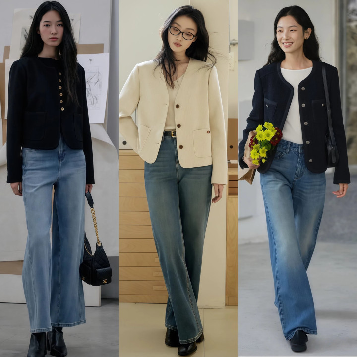 ② 小香风外衣+牛仔裤,冲破“太崇敬”的距离感