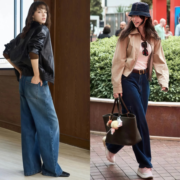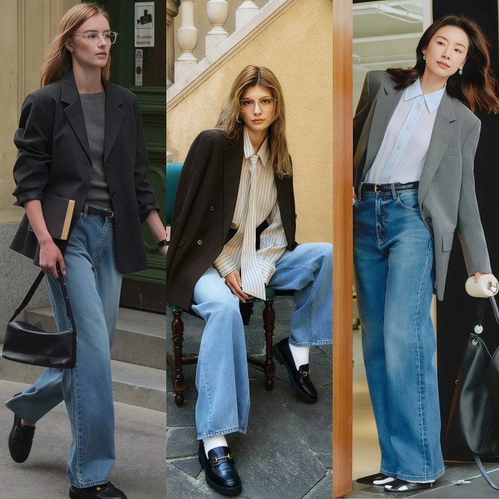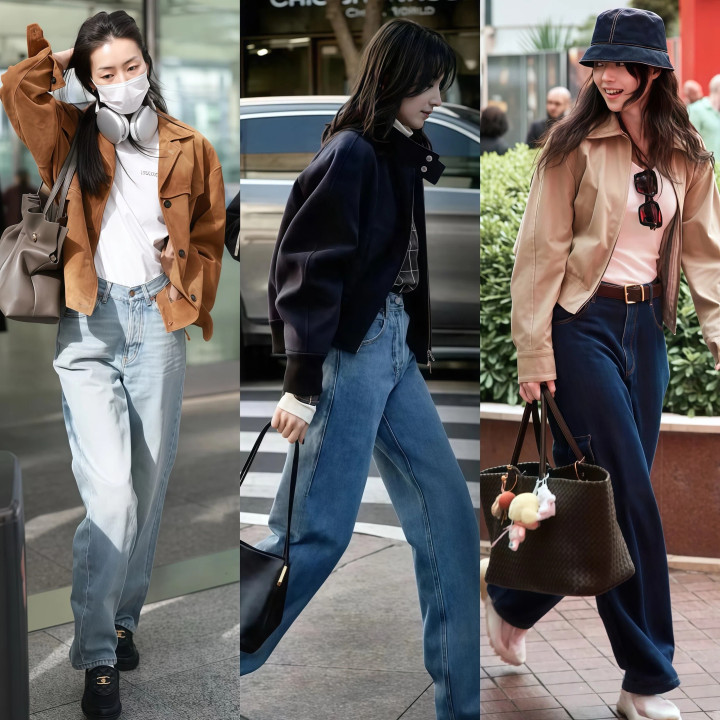 在牛仔裤的挑选上,可以去选直筒省略微喇的版型,颜料选中蓝色省略浅蓝色,脚上再搭配一对乐福鞋省略帆布鞋,总计造型look便是“平静景色”的情状。