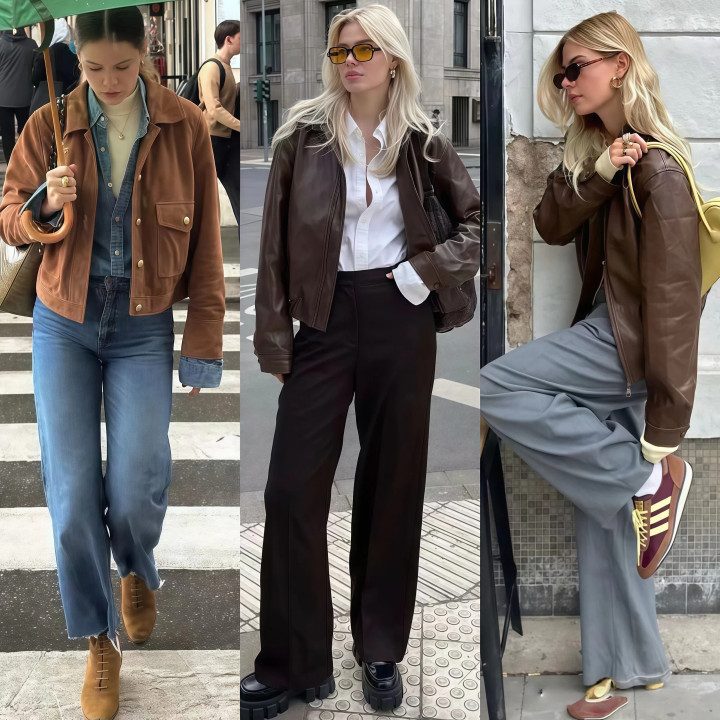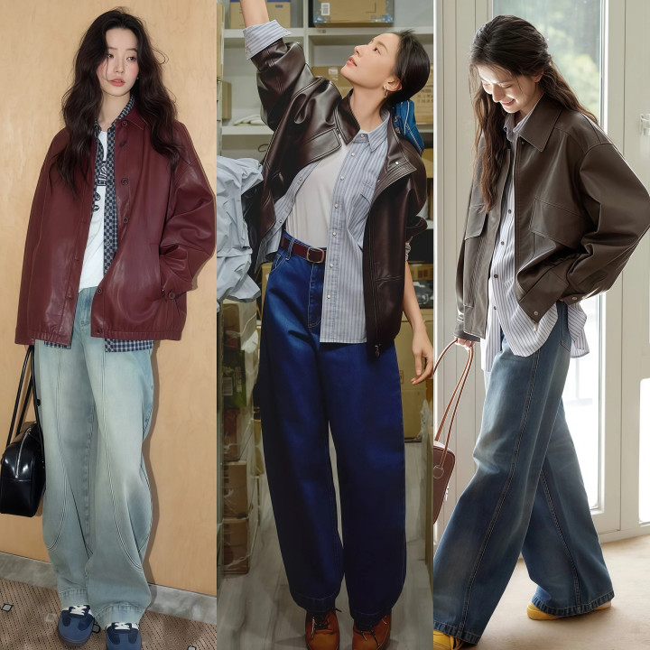 ① 棕色系皮夹克最百搭,玄色皮夹克最显酷