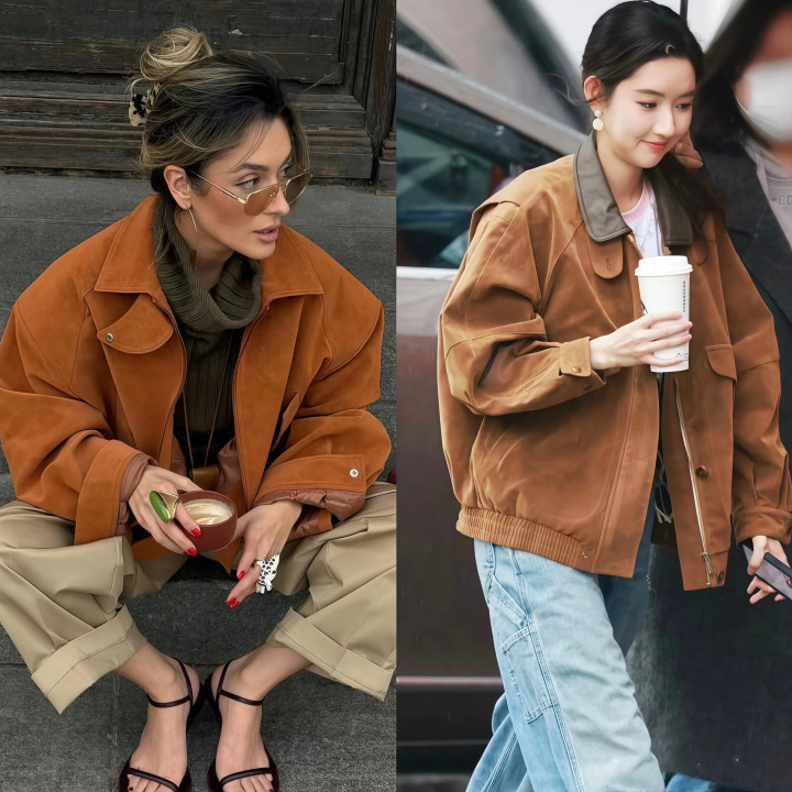 第一次买“皮夹克”的姐妹,我冷漠从棕色系动手,像焦糖棕、深咖棕、红棕色,皆曲直常好把持的颜料,配什么内搭也皆不突兀。