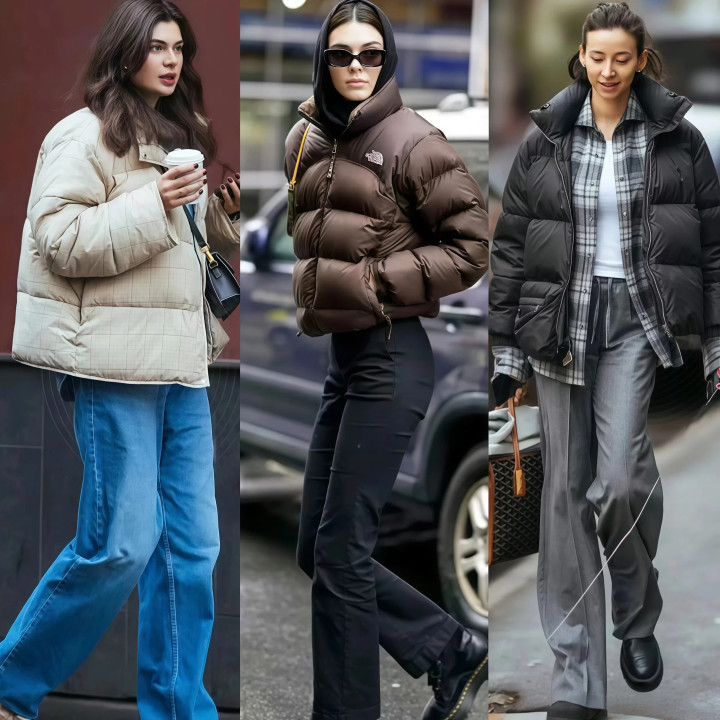 面包服是羽绒服里最御寒的格式,但亦然最容易显胖的格式,它的体积感很强,要思幸免显胖,下装一定要选修身款。比如说打底裤、紧身牛仔裤、瑜伽裤,皆是面包服的好搭档。这么搭配起来,上半身蓬松,下半身紧贴,变成彰着的对比,总计造型就不会显得太推广。