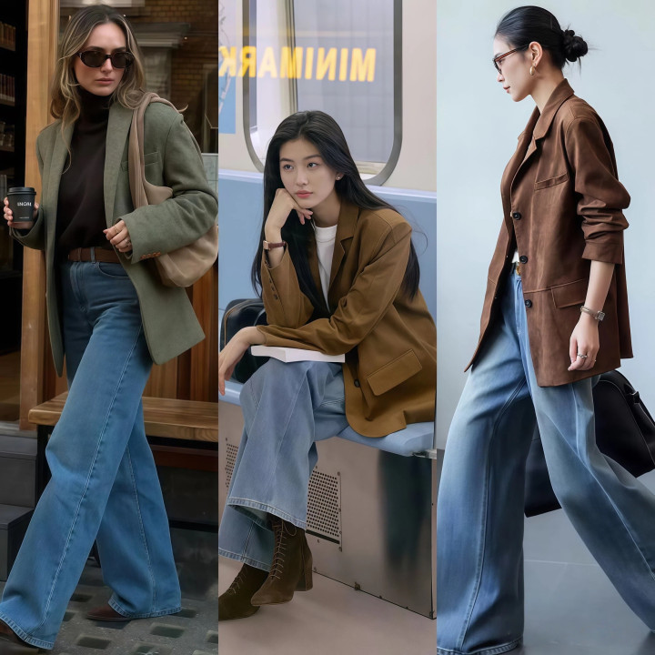 ② 西装外衣+牛仔裤,上班放工一套惩办,还不会太拘束
