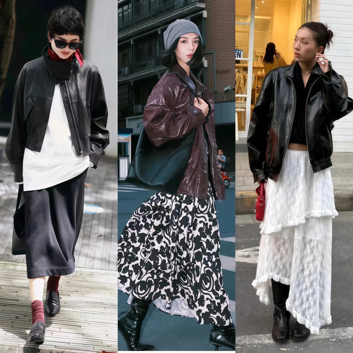 而况归拢件短外衣,搭配不同的下装,就能玄妙变换立场,像皮夹克+牛仔裤是街头风,配百褶裙就又变成了甜酷风,一件外衣就能穿出好几种立场look,性价比竟然很高。